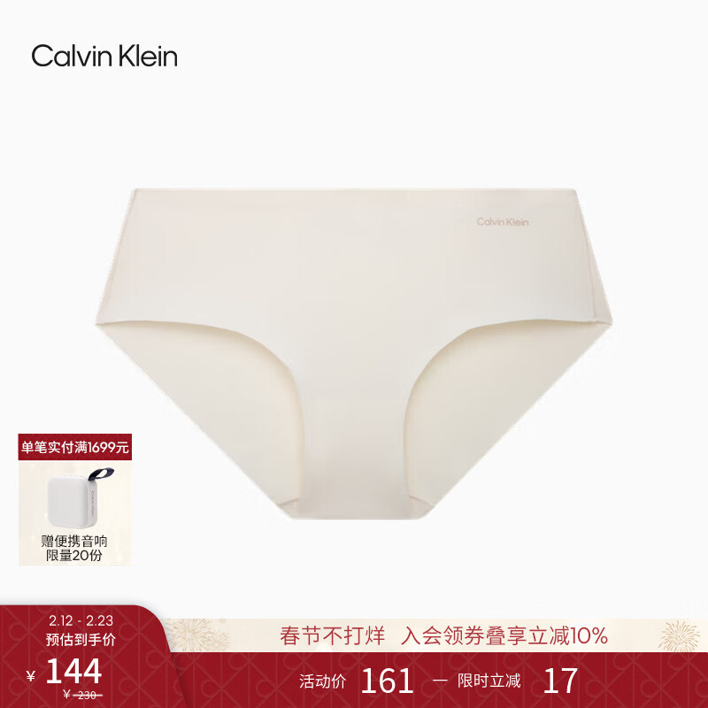 Calvin Klein内衣女舒适高弹无痕顺滑棉质裆ck纯色性感半包臀防夹臀三角内裤 101-象牙白 1条 S