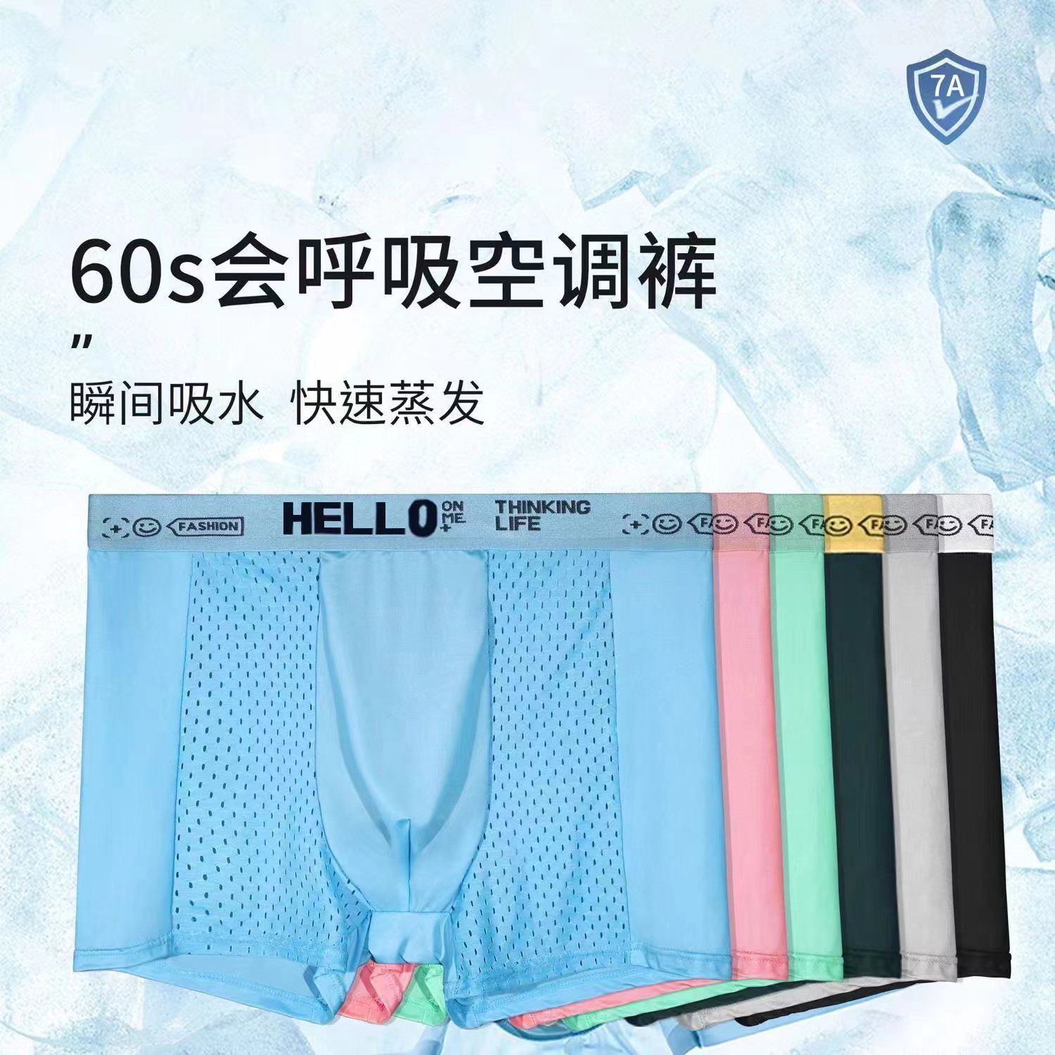 2025夏季新款冰丝男士平角内裤超薄款网眼透气四角裤抗菌轻薄镂空