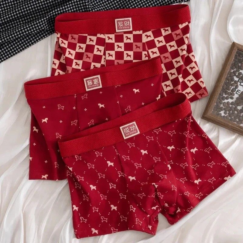 辰宣优选本命年男士内裤棉质马年大红色四角裤抑菌亲肤舒适四角裤