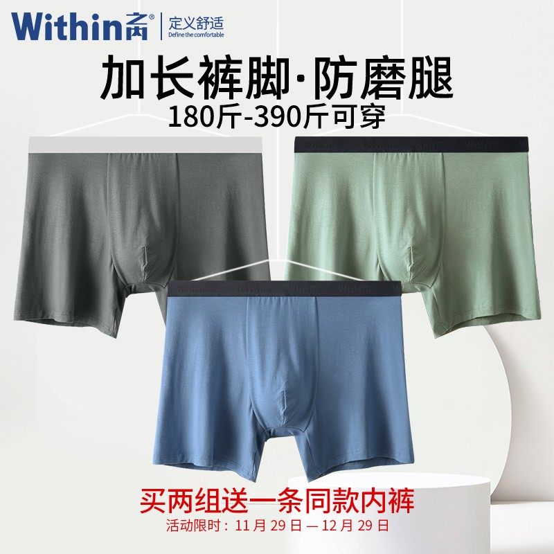 之内大码内裤男竹纤维7A抗菌加肥加大超加长不磨腿胖子肥佬平角裤