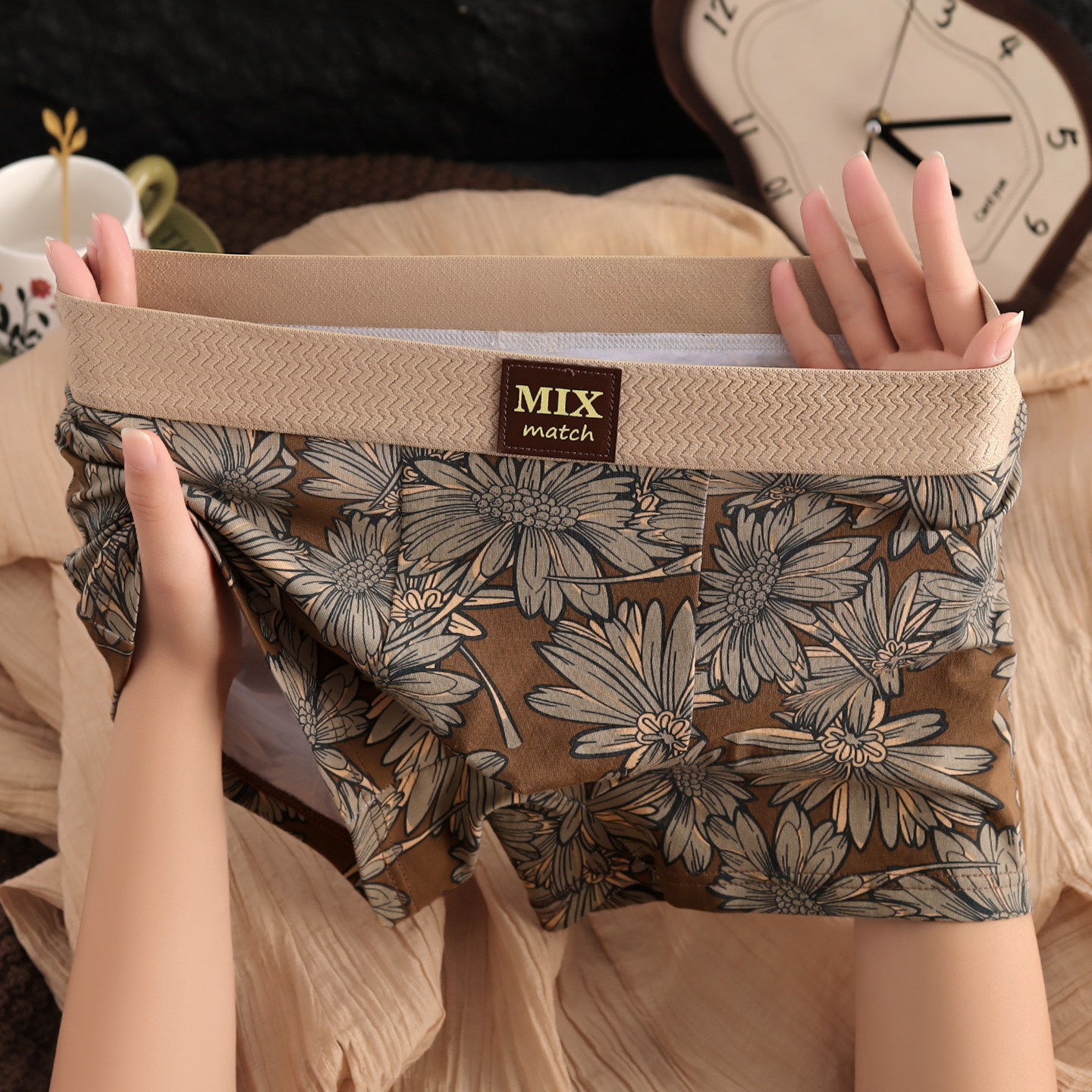 新款纯棉舒适男士内裤男款花卉印花时尚四角裤男生中腰内搭短裤衩