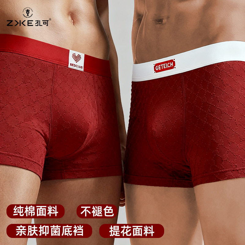 安可拉红 2026新年送礼提花纯棉男士内裤大红本命年平角裤男透气