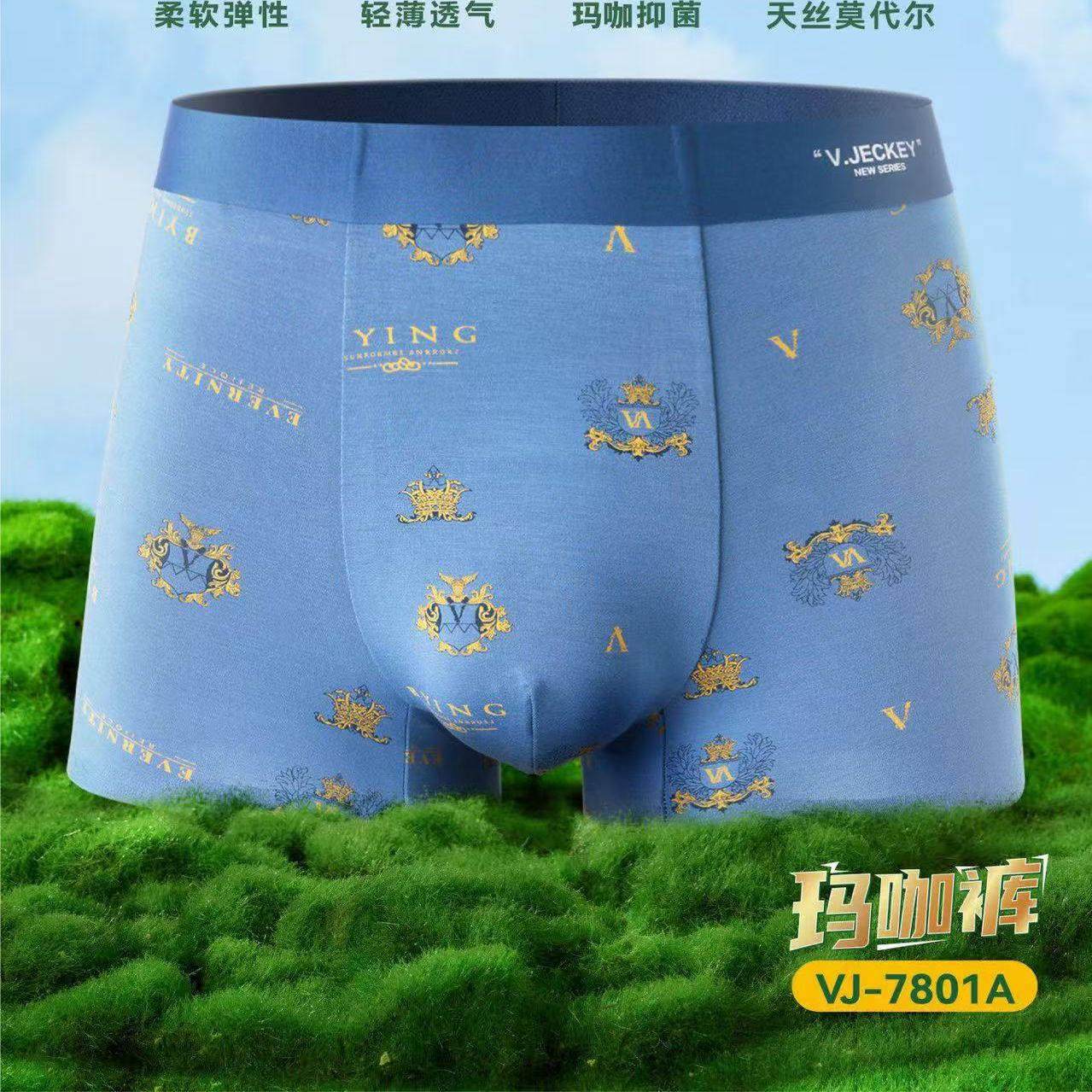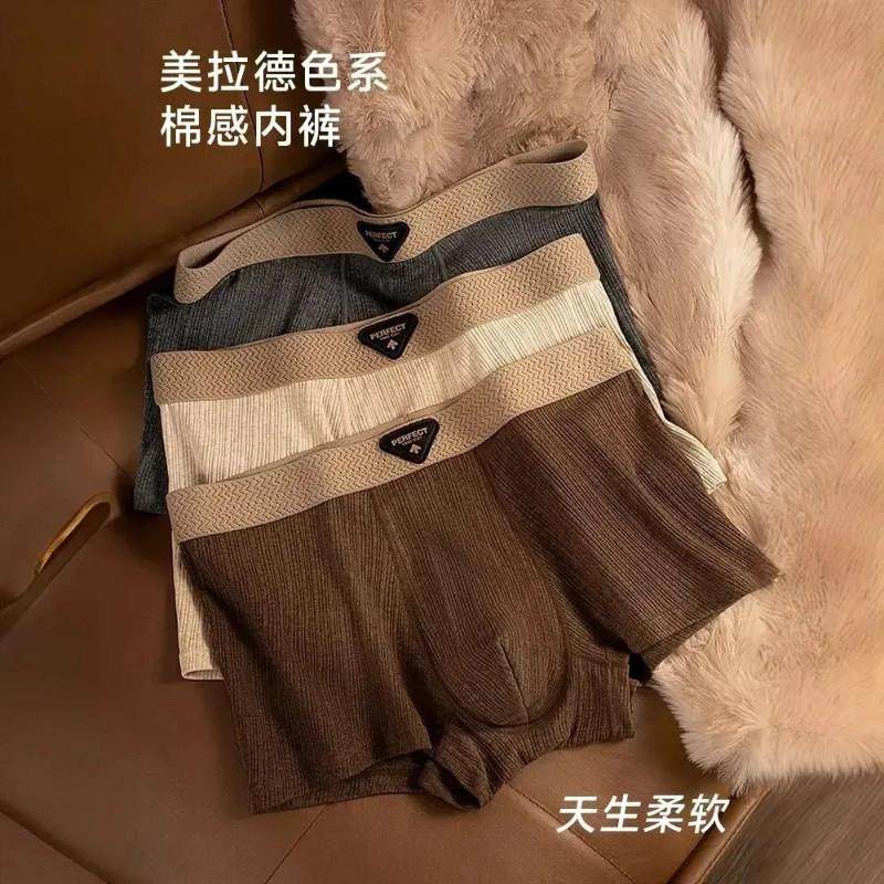 魅丽翘精品3条盒装莫代尔棉无痕平角内裤男士抗菌桑蚕丝四角裤头