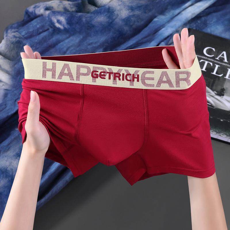 莫代尔棉男士大红色内裤生肖本命年平角裤舒适透气u型囊袋四角裤