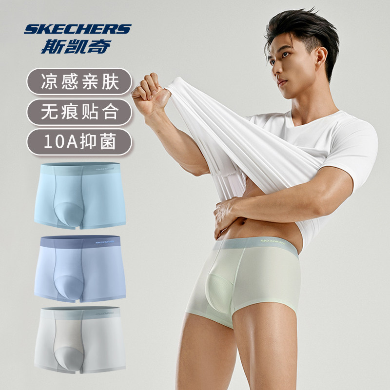 斯凯奇官方男士内裤男款冰丝透气平角短裤青少年运动宽松四角裤头