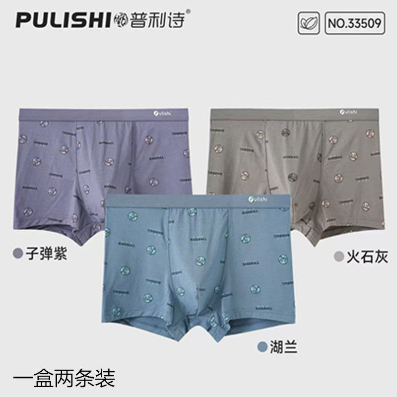 普利诗内裤男士莫代尔7A抗菌青年中腰平角裤柔软透气两条装33509