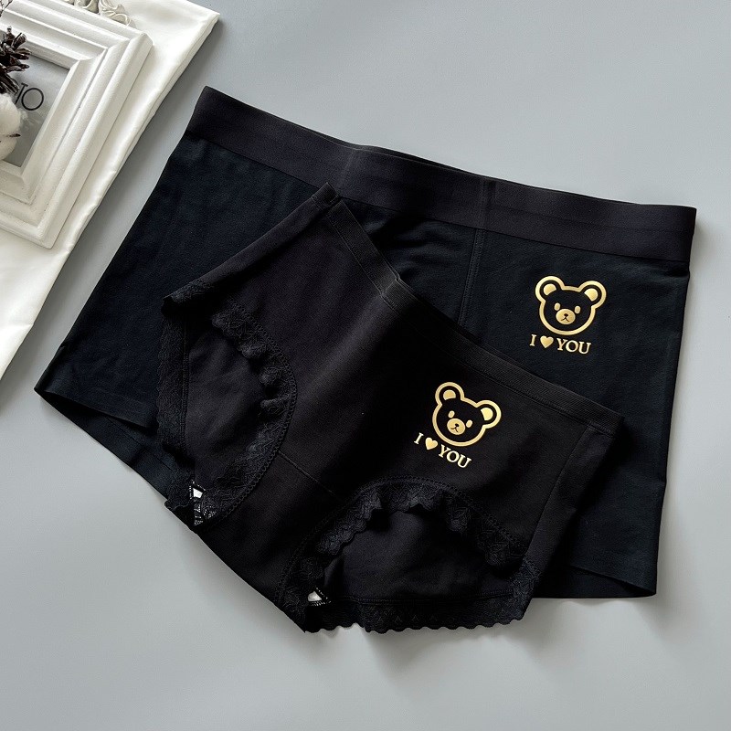 现货速发浪漫情侣款内裤冬舒适透气可爱中腰性感黑色一对情侣套装