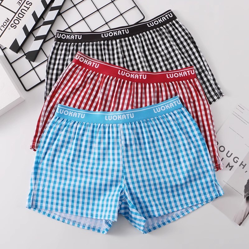 青年大码平角裤衩四角短裤头宽松男士内裤男纯棉个性感格子阿罗裤