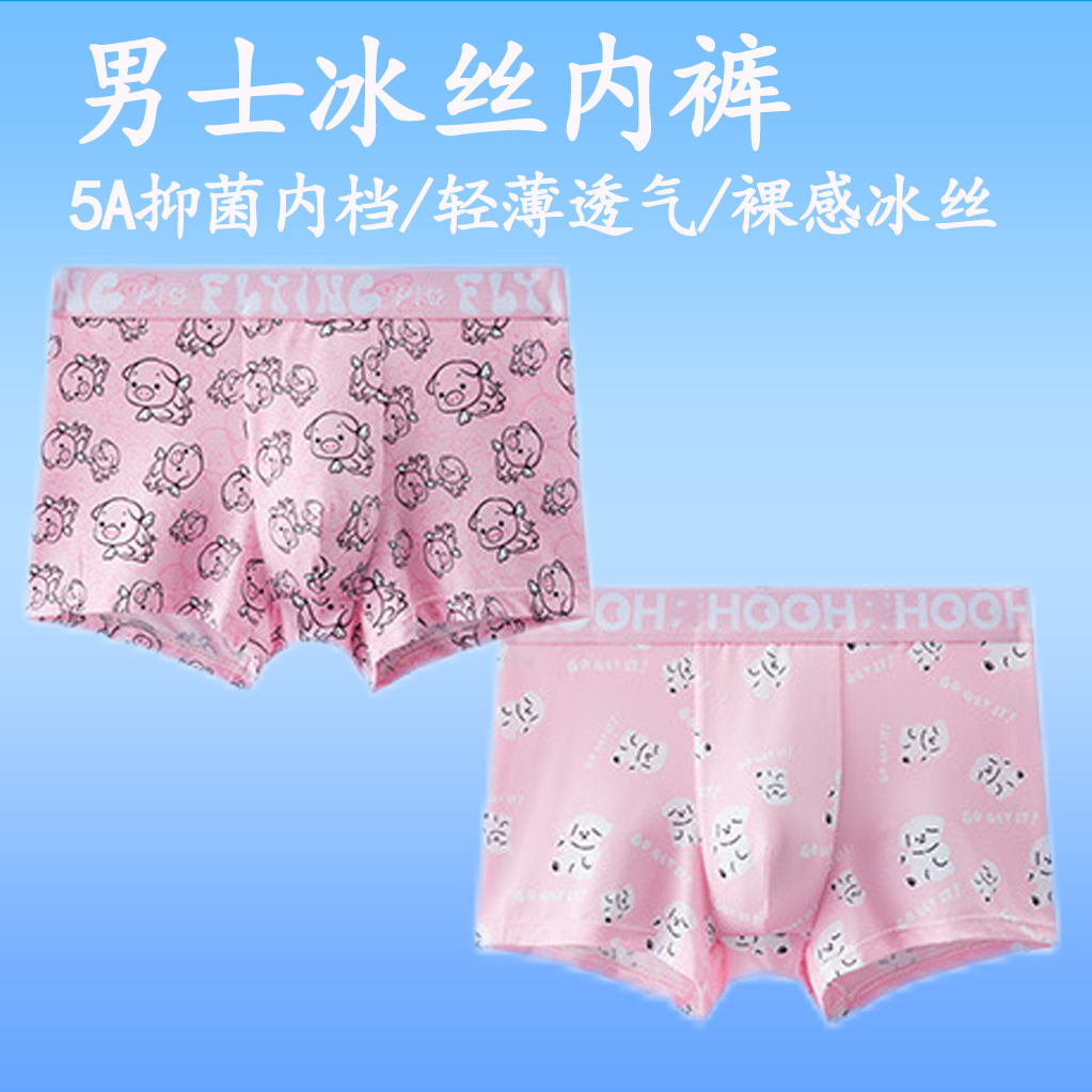 男士内裤冰丝宽松透气抗菌舒适青少年卡通平角裤男运动四角短裤头