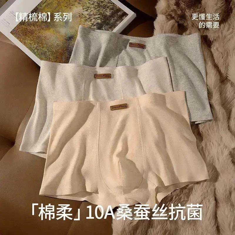 cookiekoala男纯棉内裤 裸感舒适透气桑蚕丝抗菌档平角短裤头四角