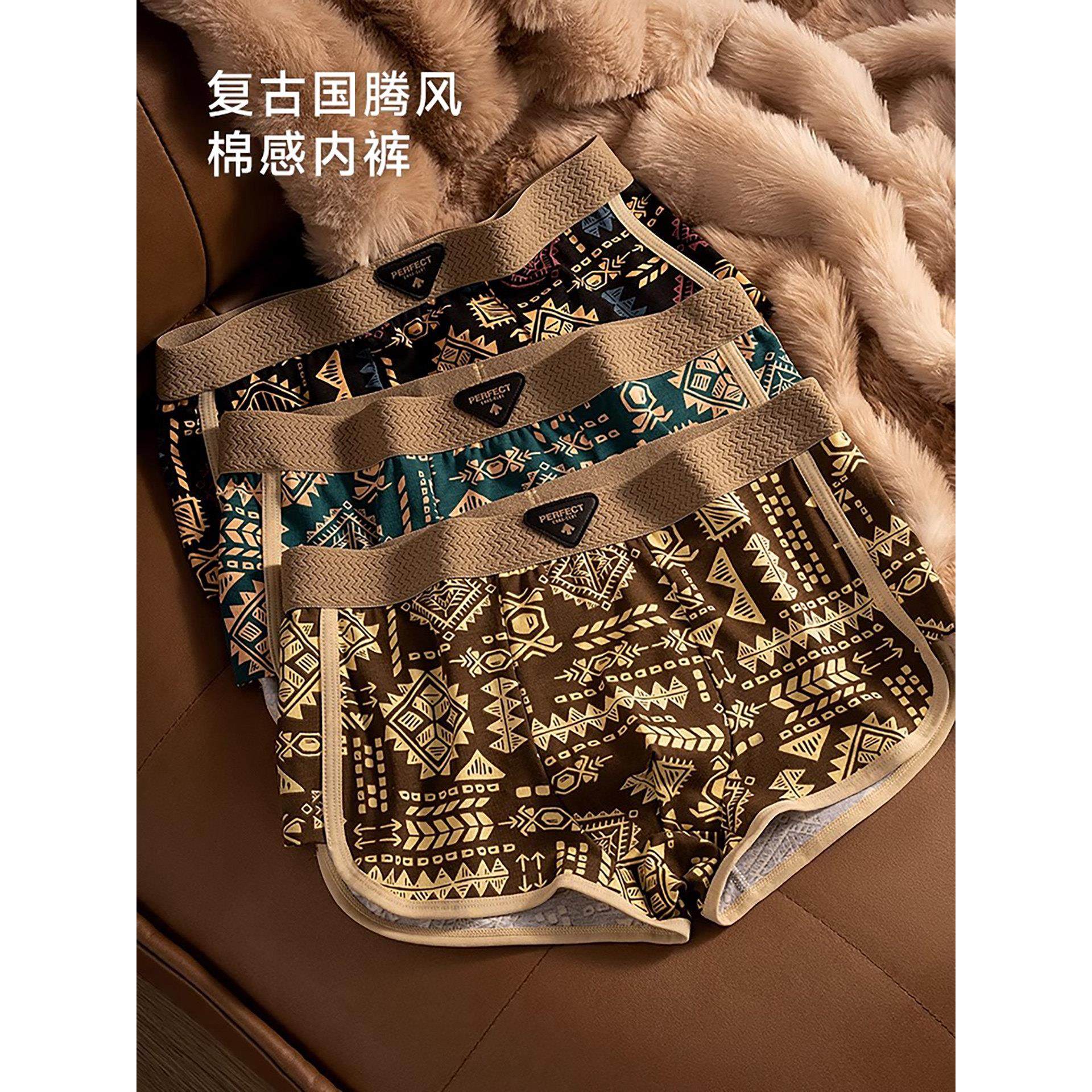 美式覆古民族风印花纯棉内裤男士中腰透气四角裤潮流平角裤阿罗裤