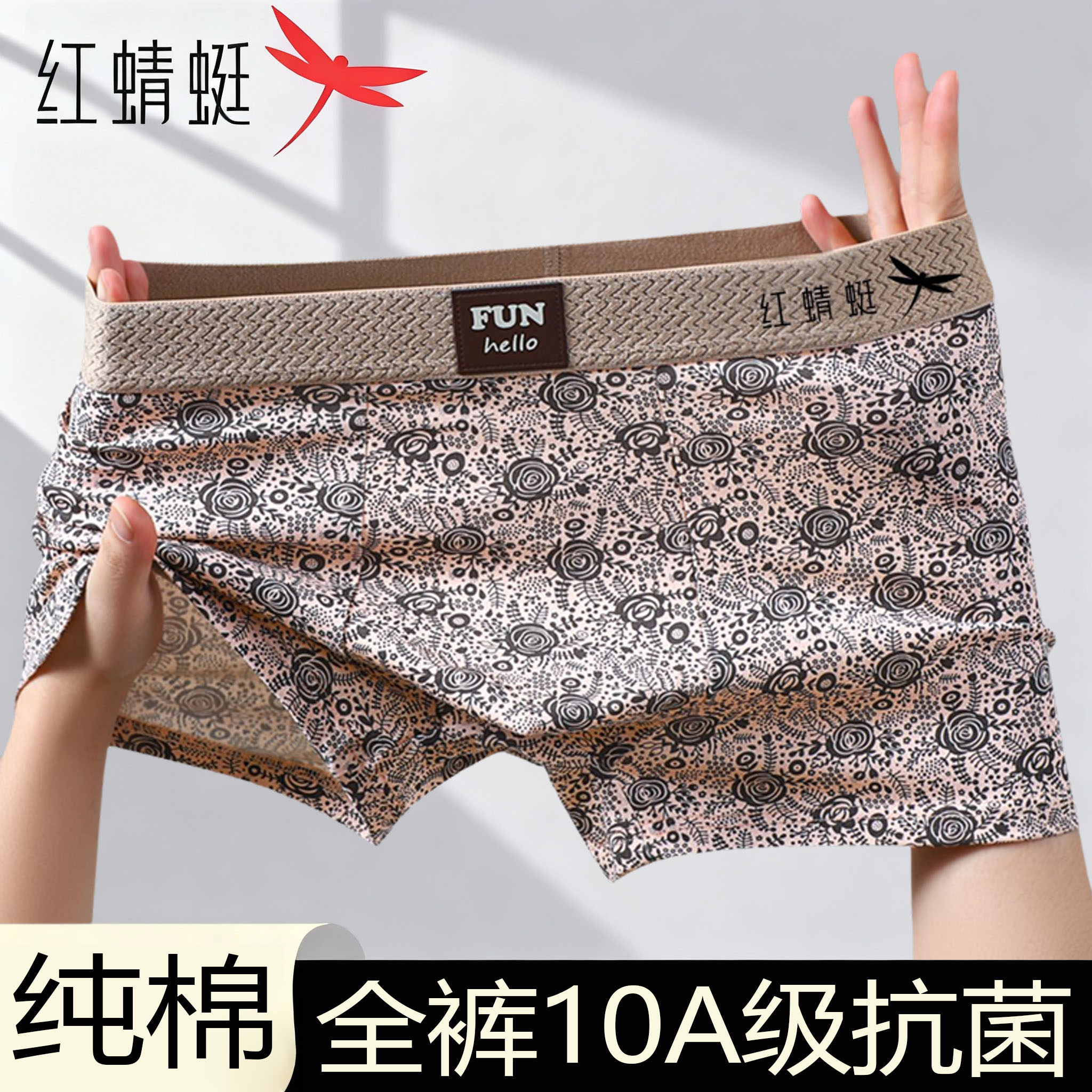 红蜻蜓男士内裤男款10A抗菌中式民族风印花透气平角裤纯棉四角裤