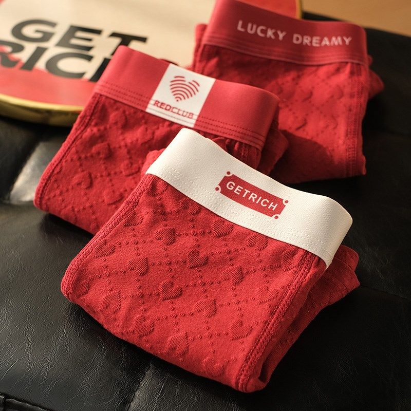 蛇年本命年大红色爱心男士内裤男款透气裆中腰平角四角裤