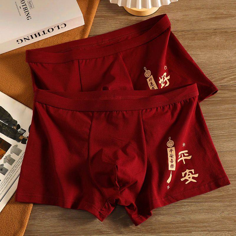 2026年男士内裤纯棉裆抗菌本命年红色发财裤舒适透气平角四角短裤