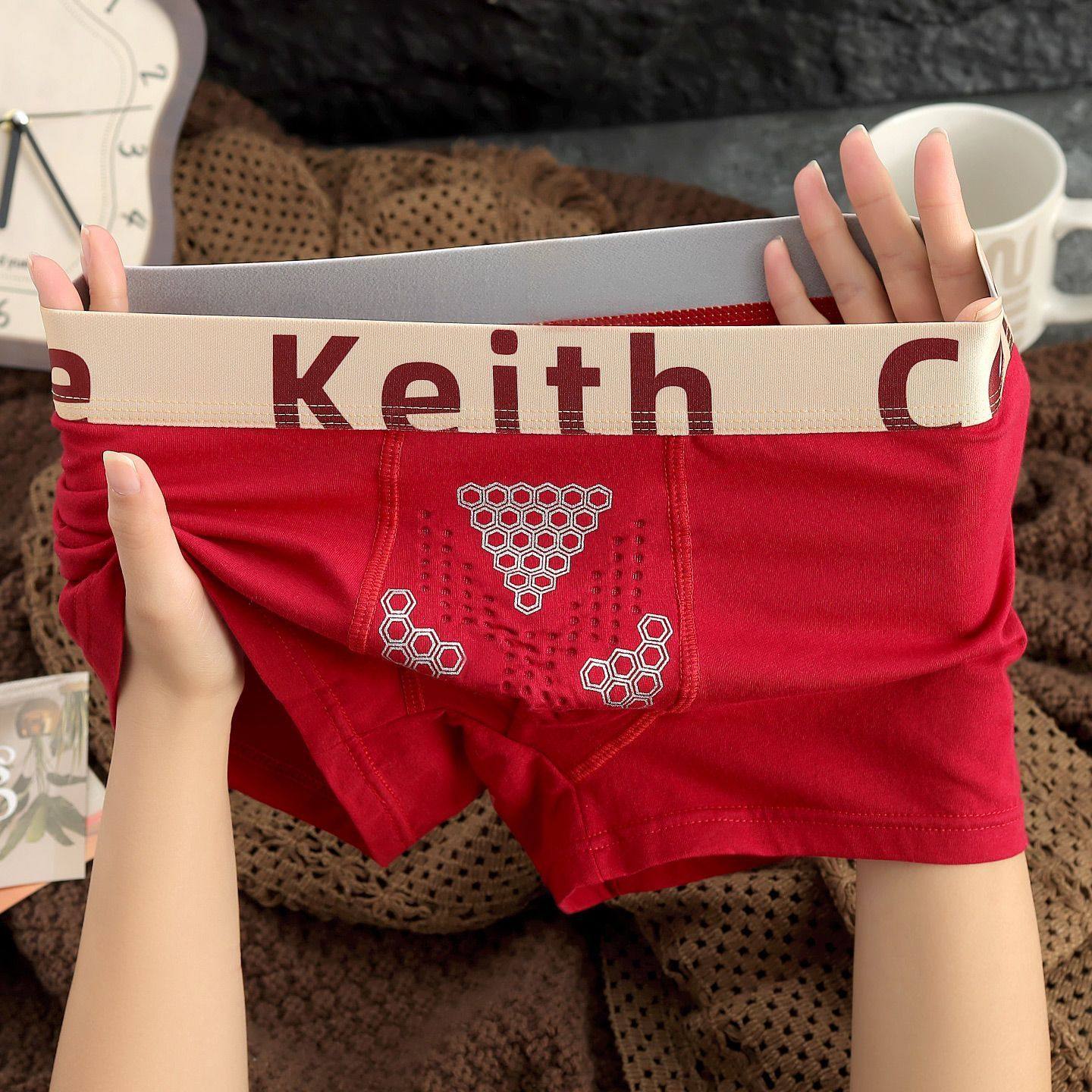 爆款纯棉男士内裤抗菌亲肤舒适透气平角红色喜庆时尚潮流四角短裤