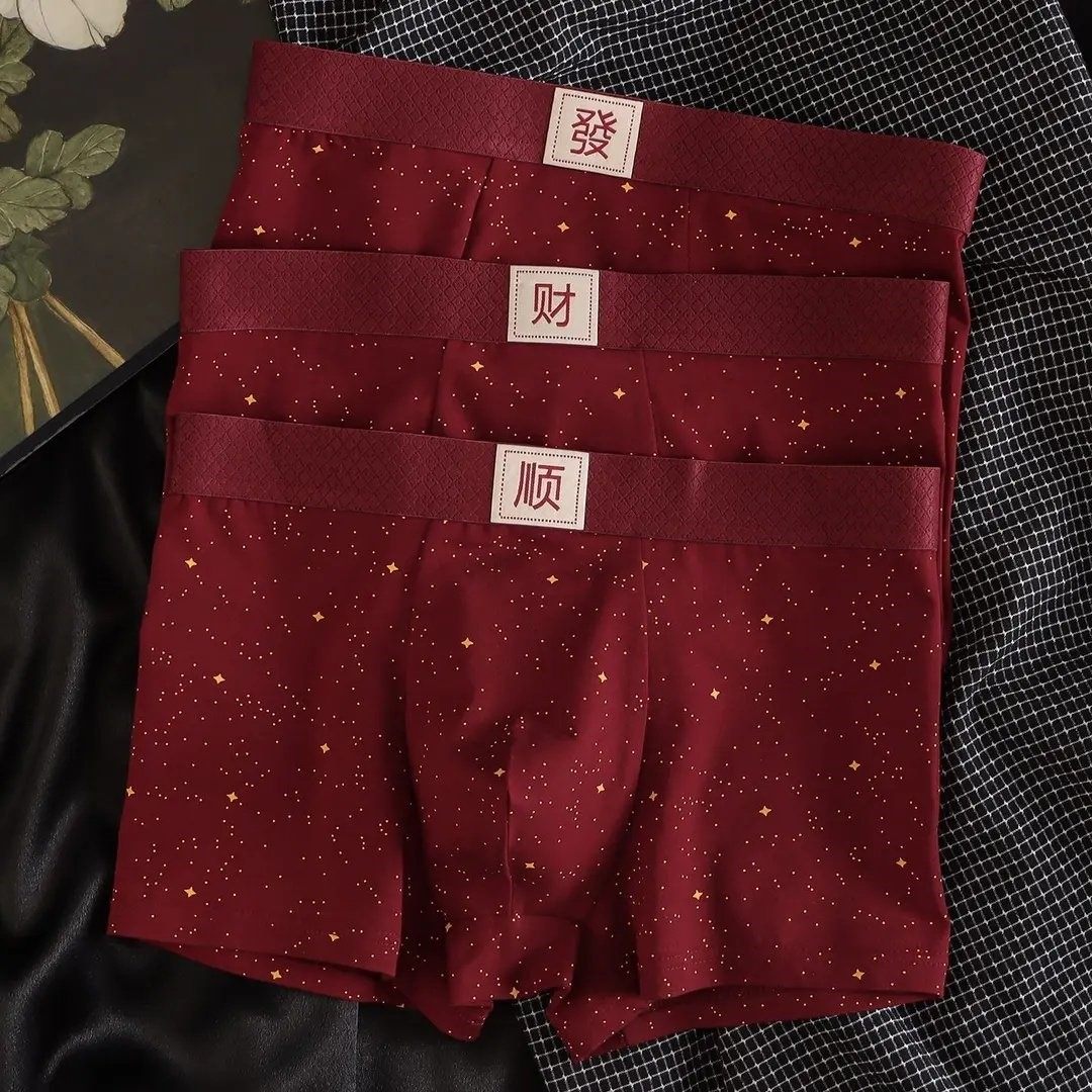 3条装男士内裤纯棉四角裤头中腰舒适透气冰丝四角内裤男红色