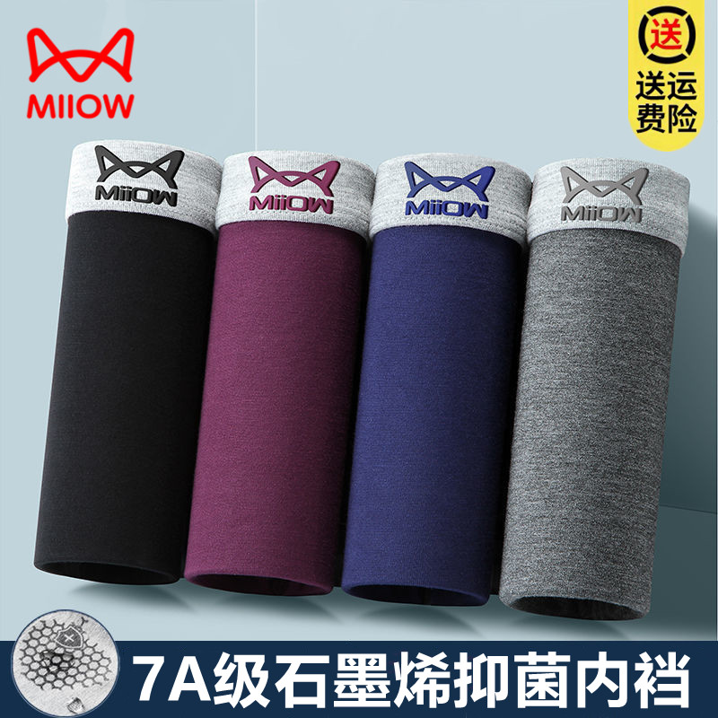 猫人男士内裤莫代尔纯棉石墨烯抗菌透气平角男大码运动四角短裤头