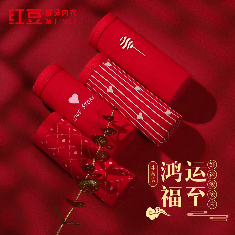 【2026新品】红豆马年本命年柔棉女士三角内裤7A抑菌短裤红色结婚