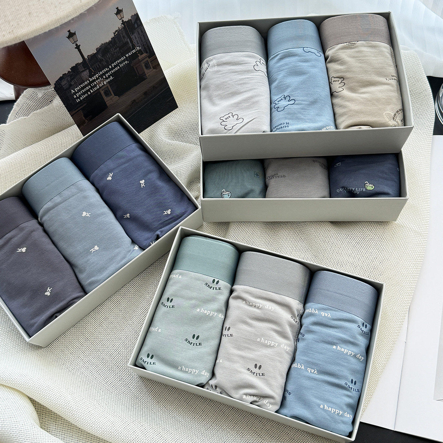 三条装莫代尔男士内裤2025新款印花柔软透气抑菌裆无痕平角四角裤