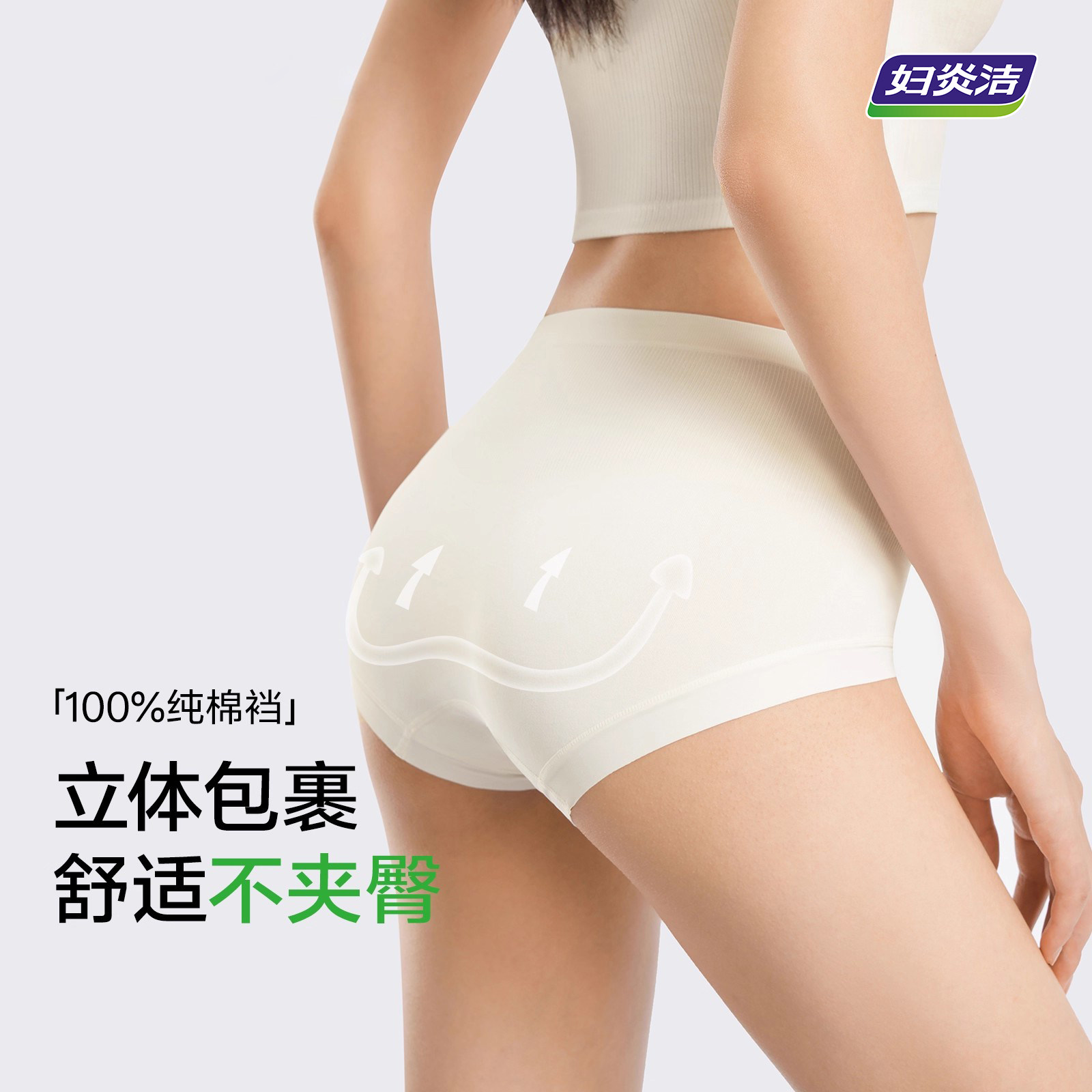 草本初色妇炎洁牌2025新内裤女中高腰加长纯棉底裆抗菌无痕三角裤