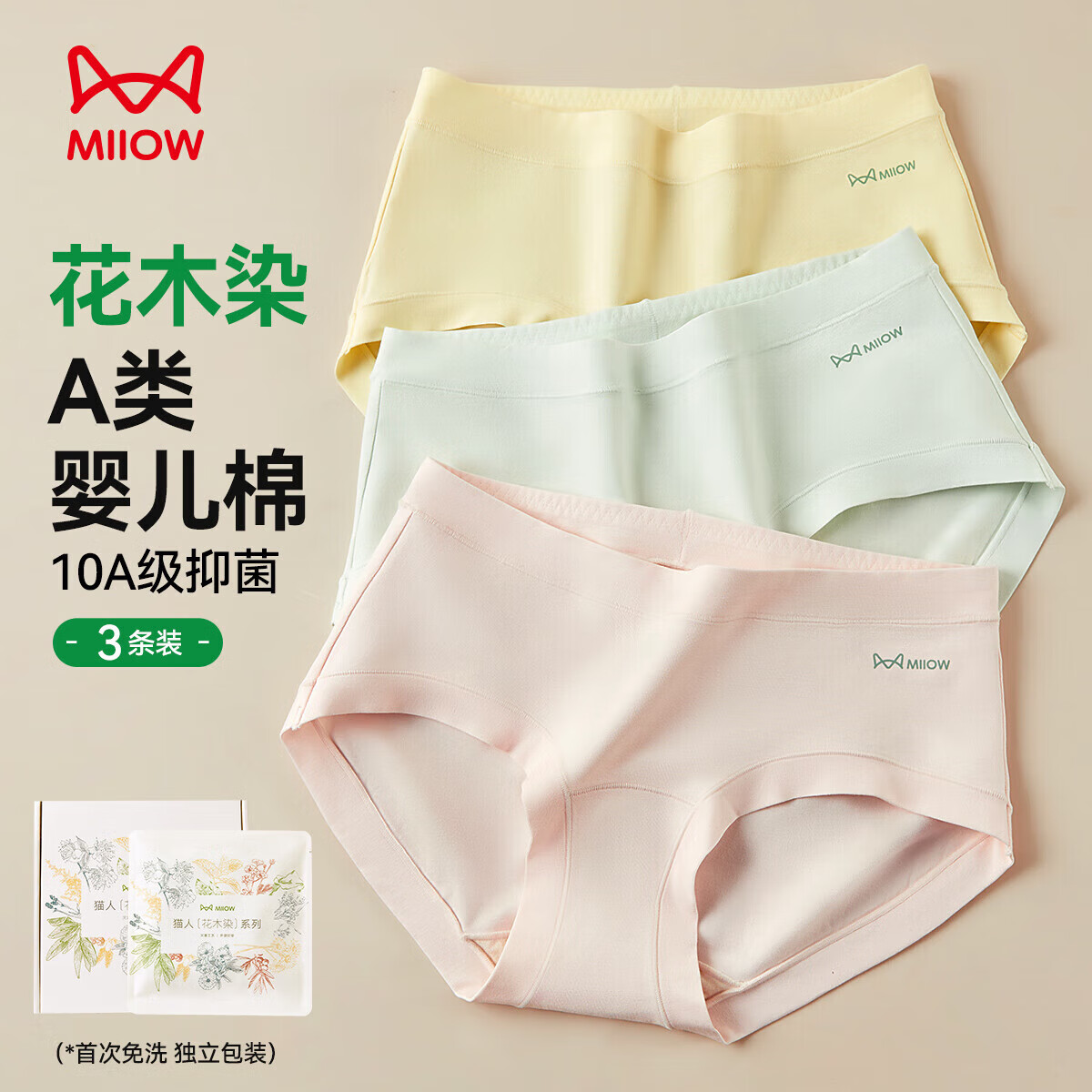 猫人【植物花木染】女士内裤女纯棉100%棉抑菌裆透气少女大码三角裤
