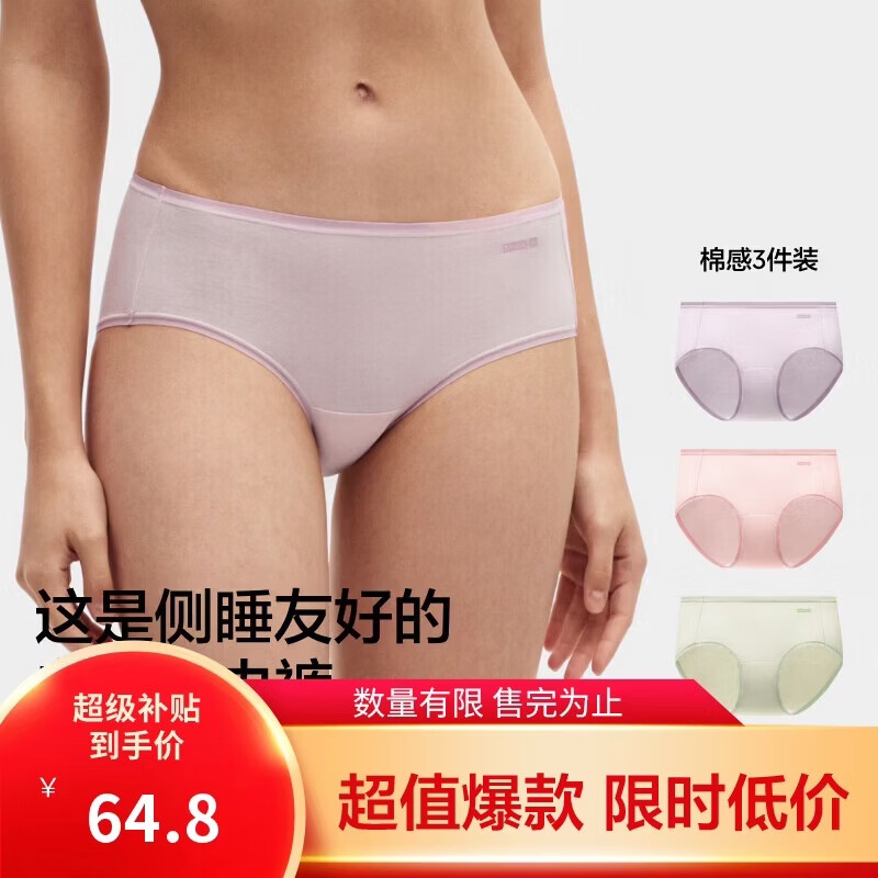 蕉内(Bananain)银皮338S纯棉女士内裤40支白胖棉透气防夹臀10A抗菌中腰三角裤3件