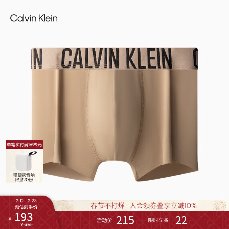 Calvin Klein内衣【风暴引力带】男美拉德提花ck细滑防夹臀四角裤平角内裤男 PCN-薄暮棕 M
