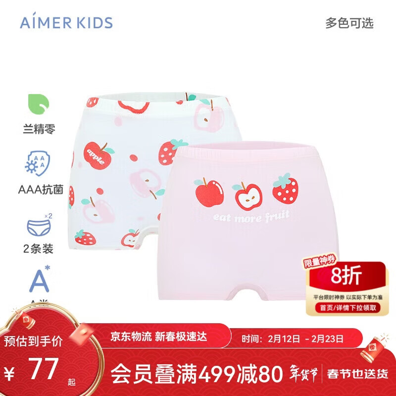 爱慕儿童(AIMER KIDS)内裤女童莫代尔中腰平角内裤2条装女孩短裤AK123D451苹果130