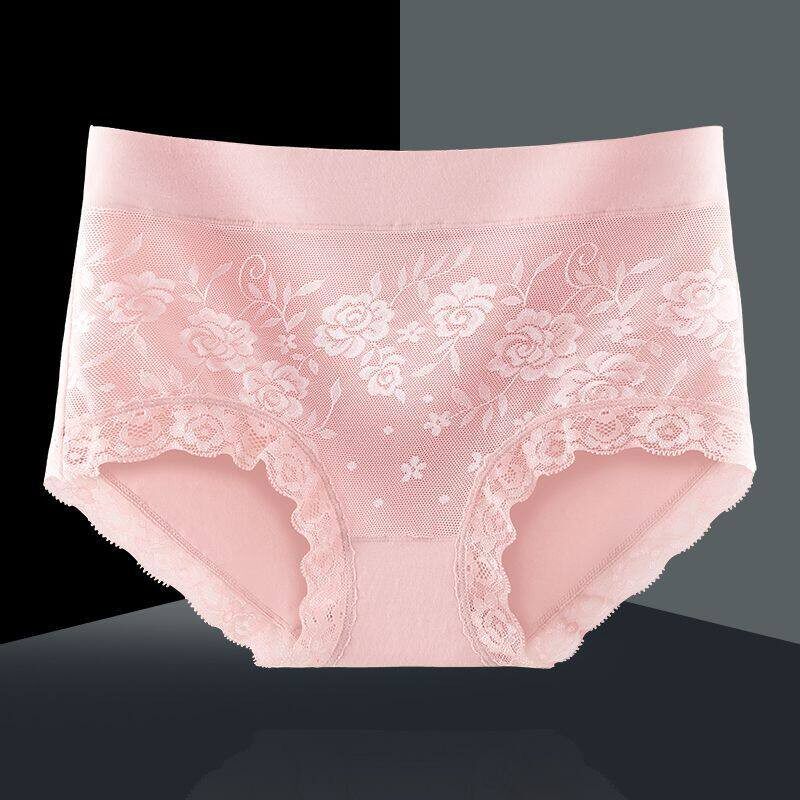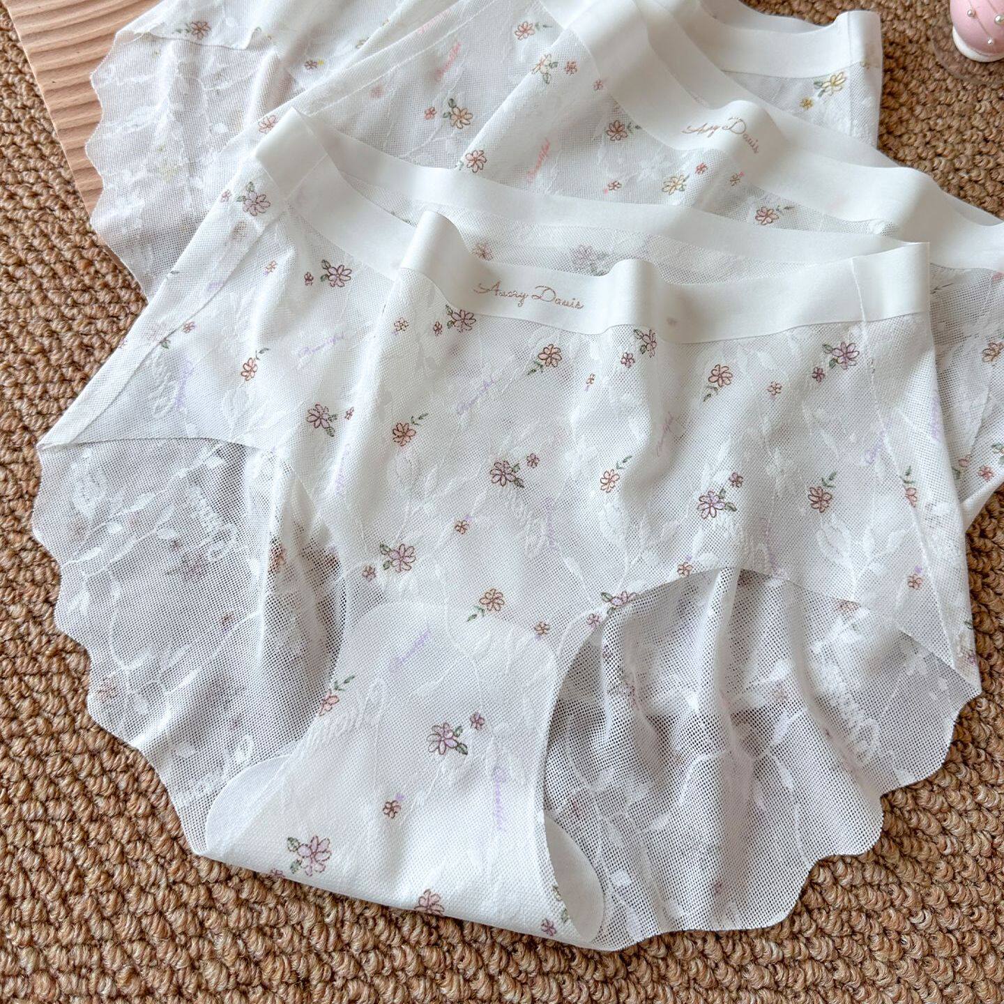5条 蕾丝内裤女无痕7A抗菌加长裆性感纯欲风中腰少女大码三角裤薄