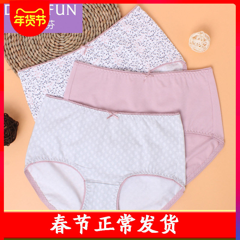 蝶安芬女士印花棉质三角内裤1005高腰大码妈咪裤透气轻薄女短裤头