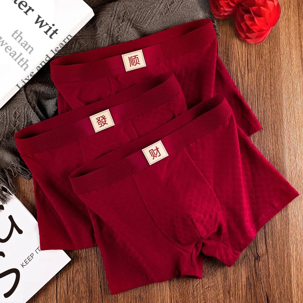 本命年结婚红色大红纯棉内裤男士内裤透气舒适鸿运内裤纯棉平角裤