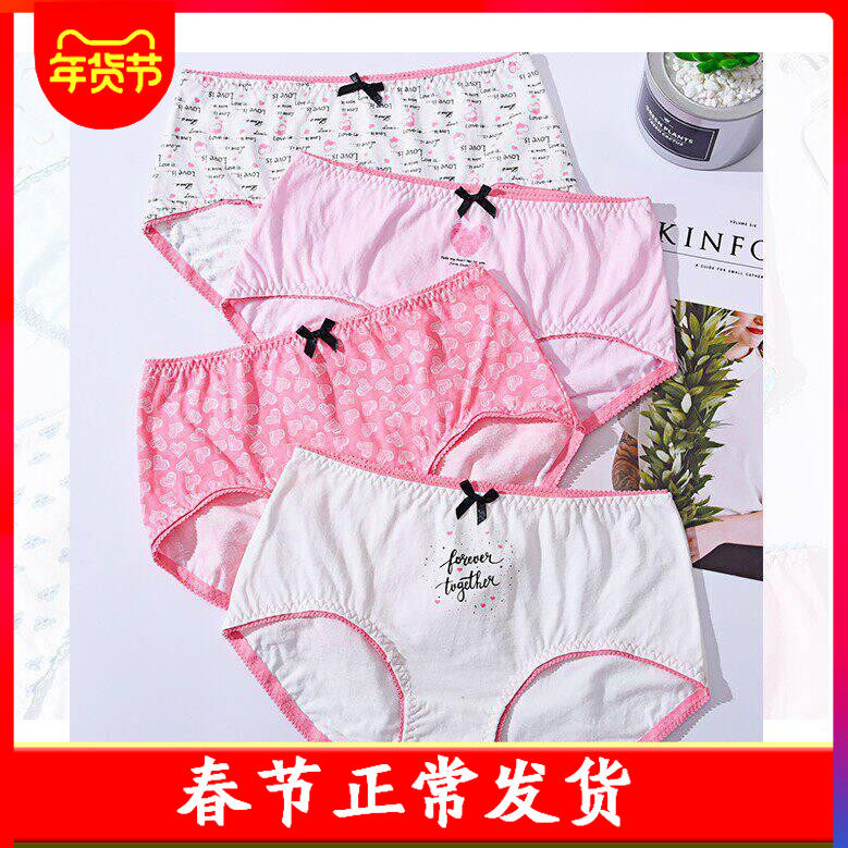 蝶安芬纯棉女内裤100%全棉中腰小平角内裤女短裤爱心少女裤头提臀