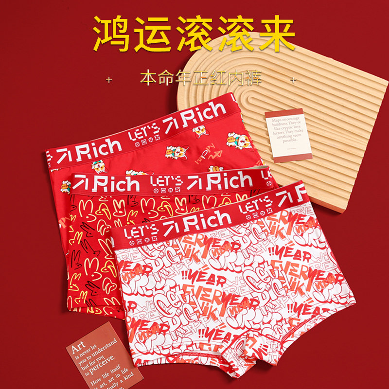 本命年红色女内裤纯棉卡通四角宽边中腰抗菌裆印花大码透气