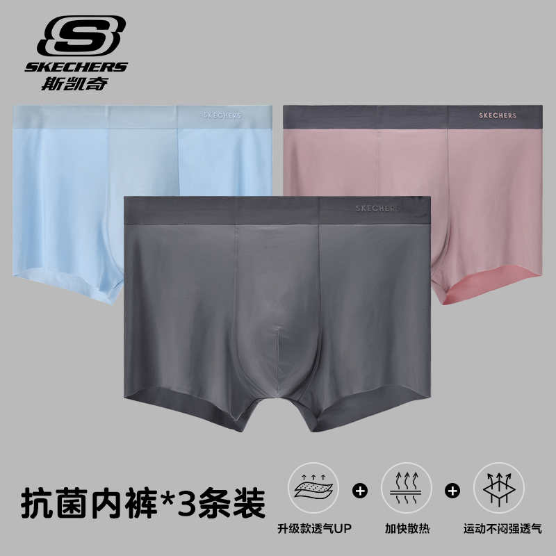 斯凯奇内裤男士新款夏薄款透气冰丝抗菌平角裤官方正品四角短裤衩