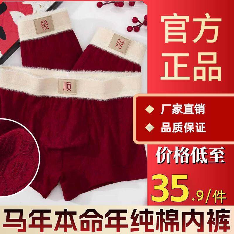 【香港&潮牌专柜正品】酒红色本命年纯棉男士内裤属马年柔软舒适