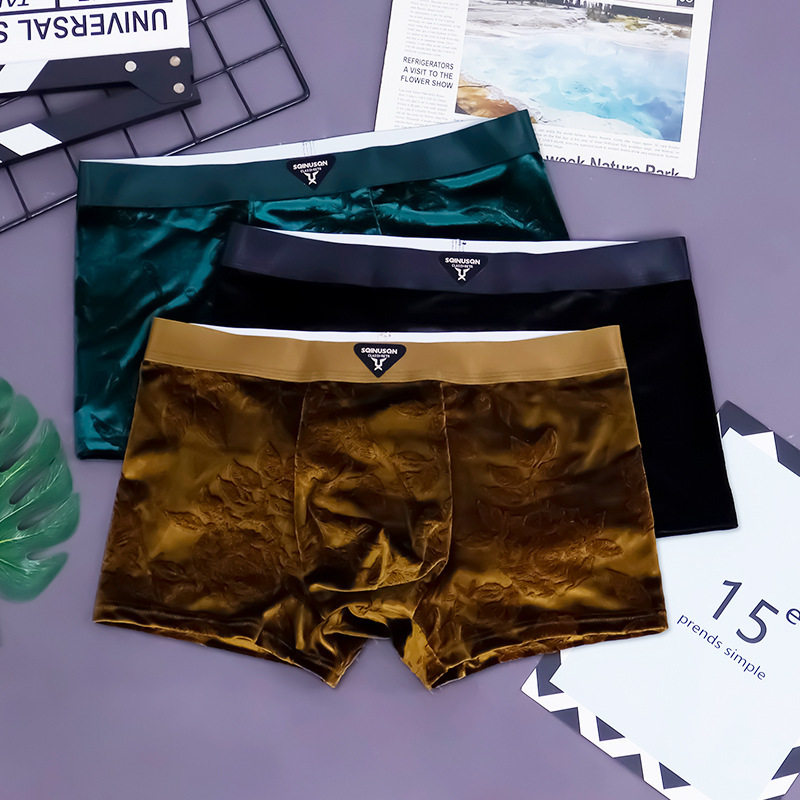 SQINUSQN/狮奇诺跨境批发男士内裤丝绒奢华平角裤抑菌四角裤