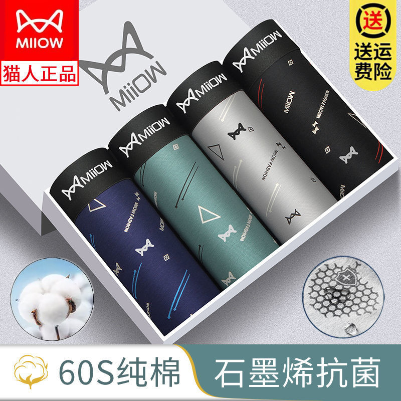 猫人男士内裤印花纯棉石墨烯抗菌透气平角男大码性感运动四角短裤