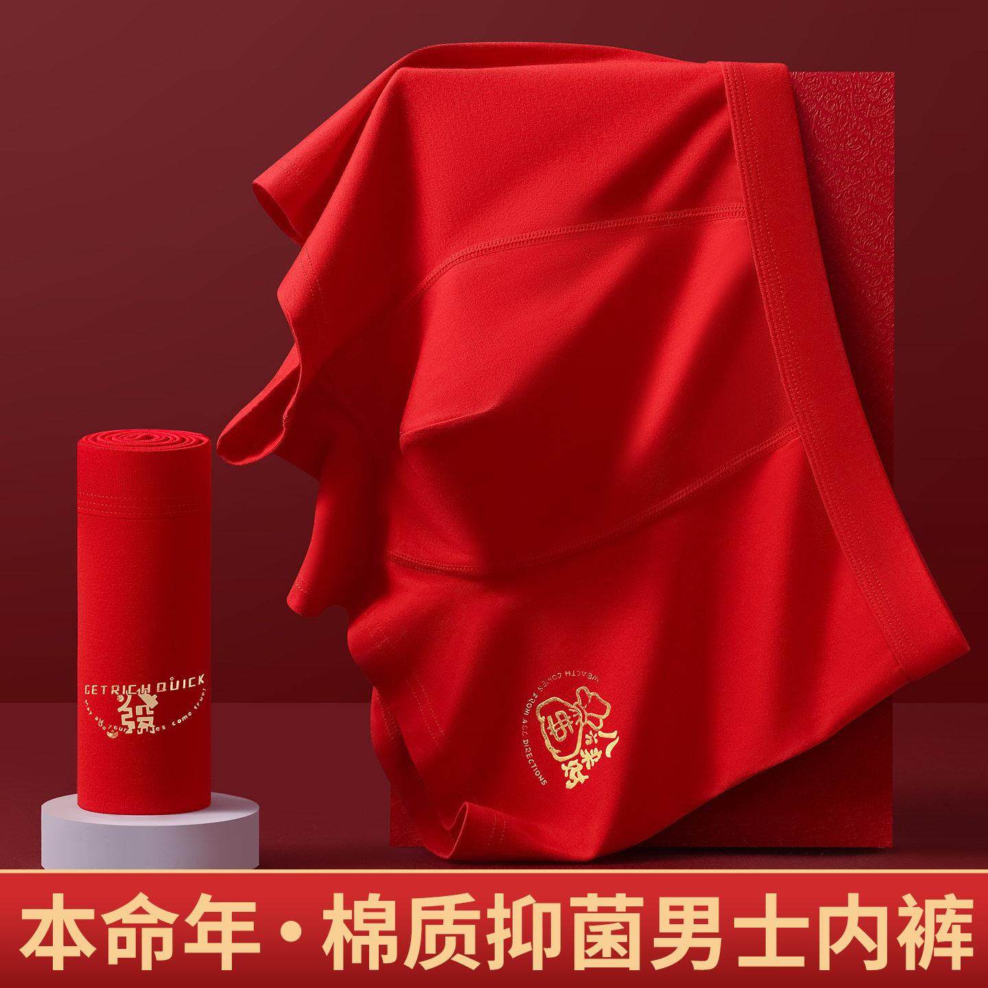 本命年内裤男红色大红男士属龙结婚龙年青少年礼物红内衣送礼新款
