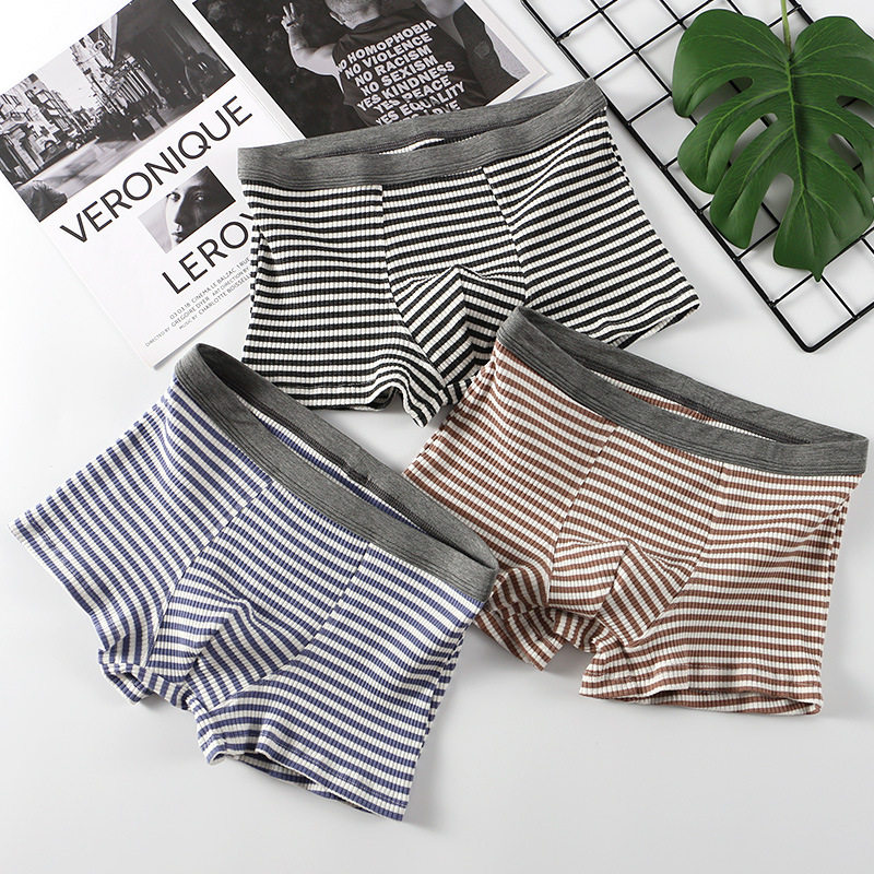 男士内裤条纹内裤男新款棉款中腰运动透气冬季青少年内裤平角裤
