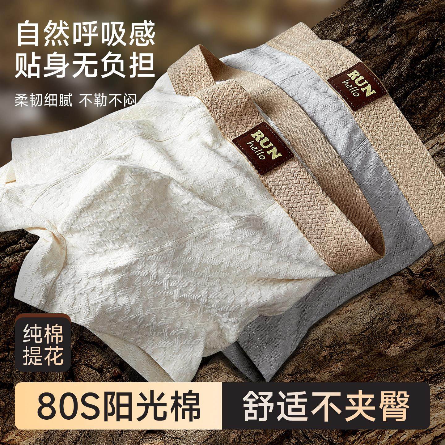 端享精选3件装男士平角内裤纯棉透气抗菌四角短裤中腰大码平角裤