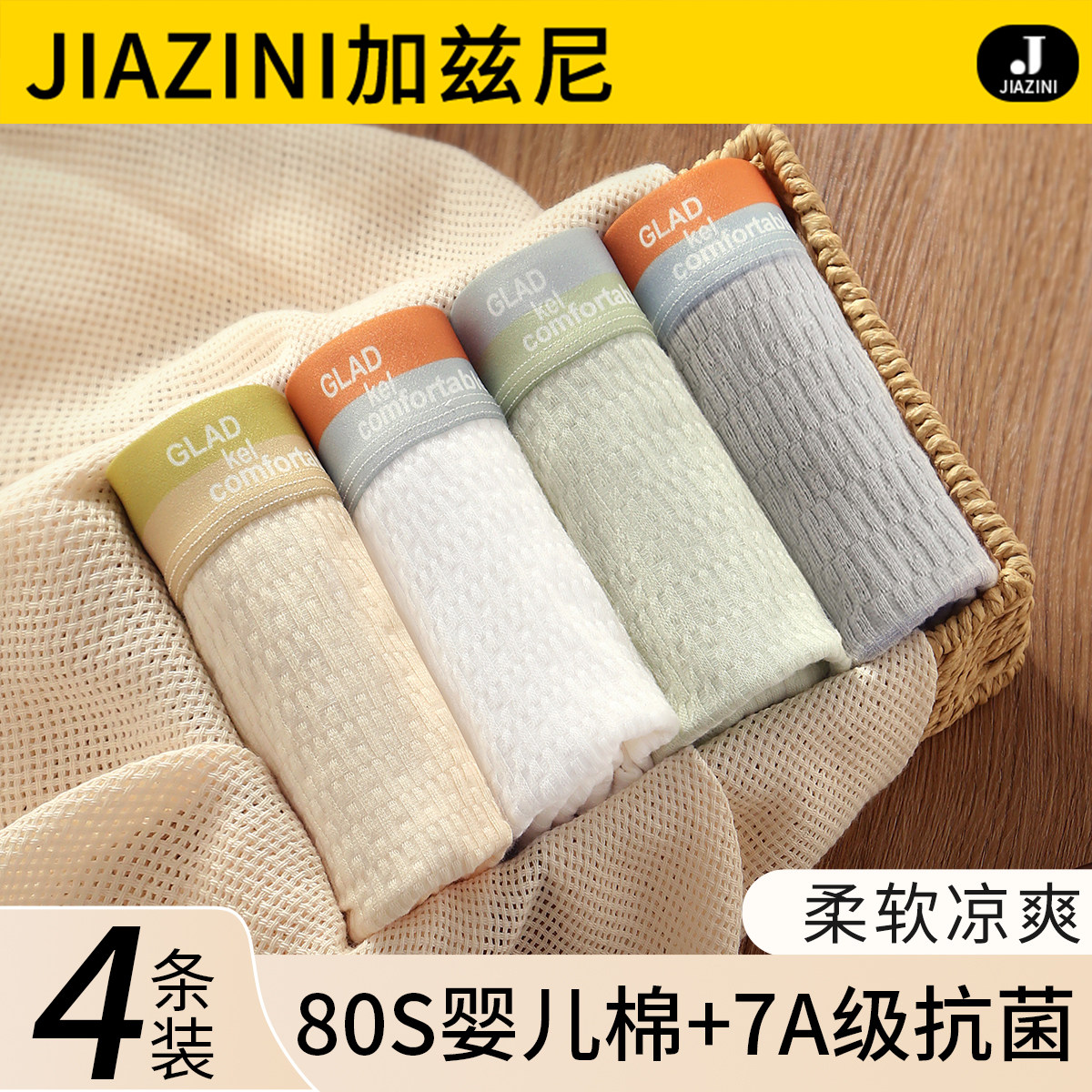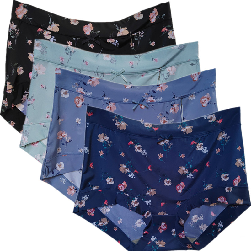 4条装彩田内裤女石墨烯冰丝印花中腰31558莫兰迪平脚大码透气舒适