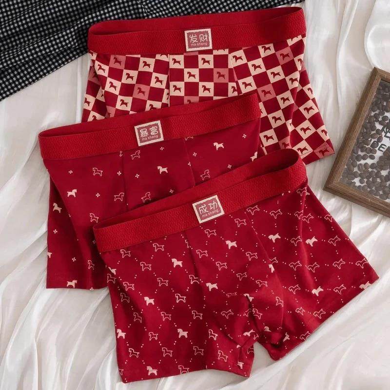 艾亦男士内裤本命年酒红发财印花大码短裤头10A纯棉青少年平角裤
