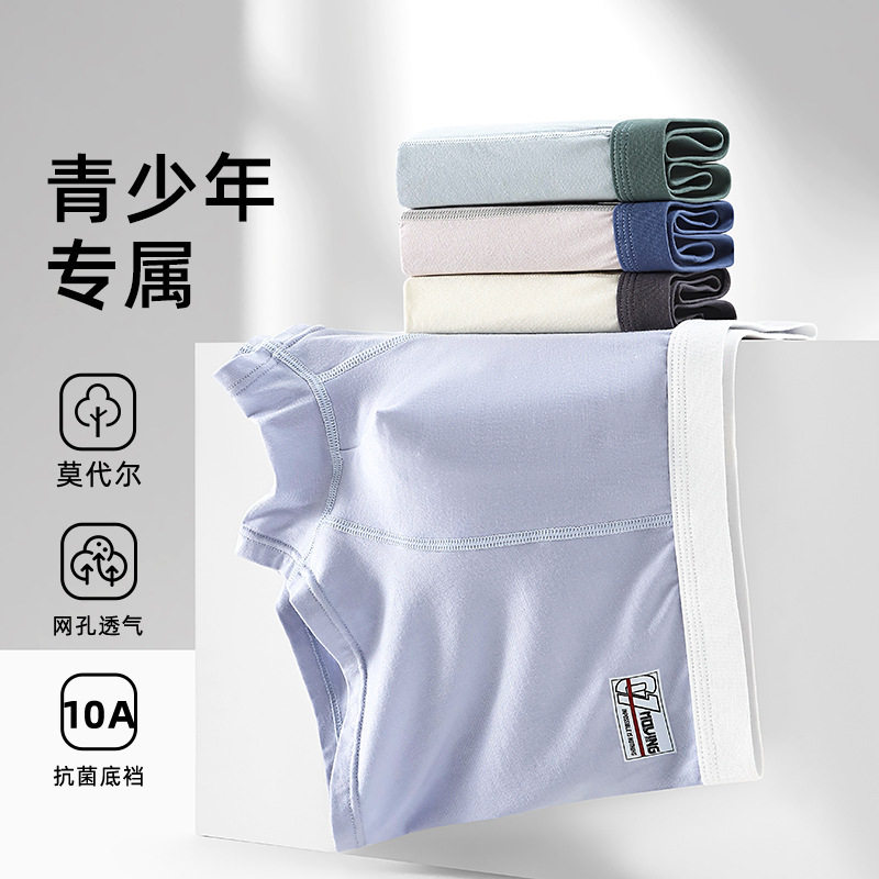 夏中高腰发育期青少年内裤男中学生大童莫代尔纯棉内裆四角裤头