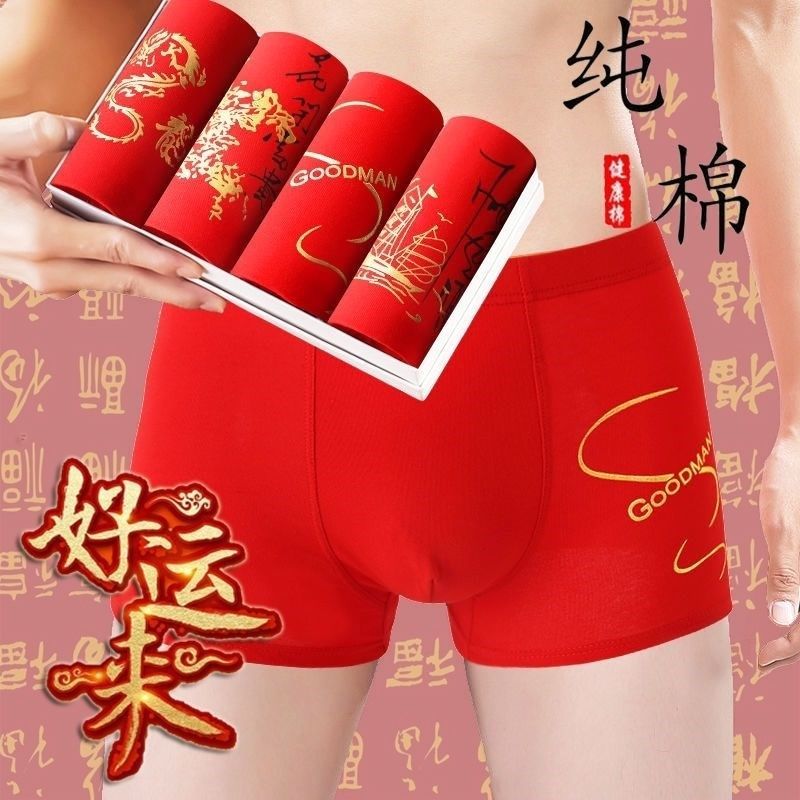 1-2条男士纯棉内裤印花龙年大本命年大码红色男生青年四角平新品