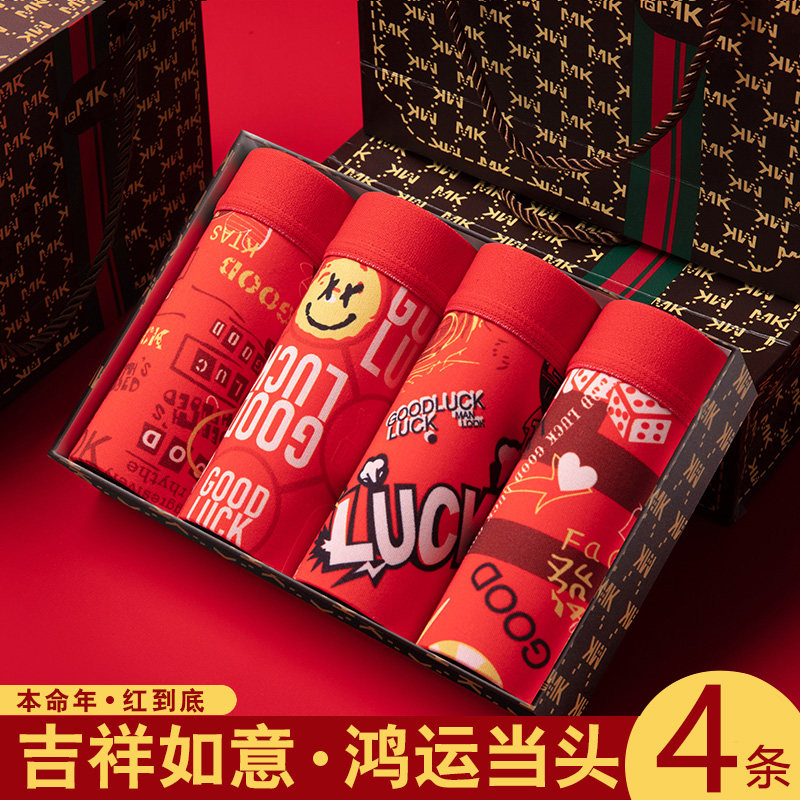 精美礼盒装男士内裤男加肥加大码红色本命年平角裤大红四角裤头