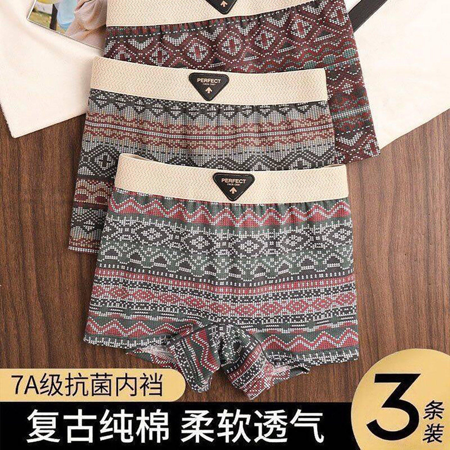 潜嘉静厂家直发女士内裤民族风7A级抗菌四角裤复古印花中腰四角裤