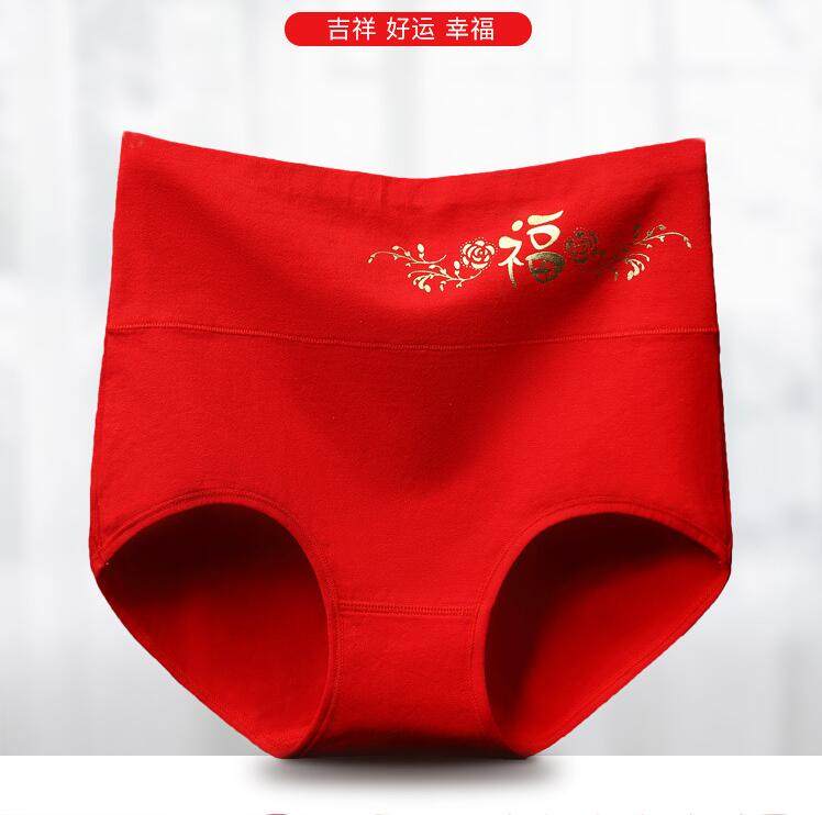 加大码本命年福大红色纯棉女士内裤高腰中老年中年妈妈结婚囍裤头