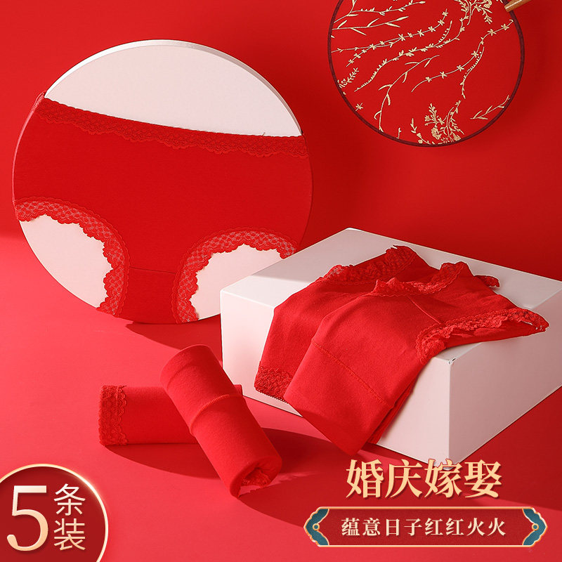 内裤女大红色性感纯棉本命年喜庆虎年抗菌蕾丝中腰喜庆全棉三角裤