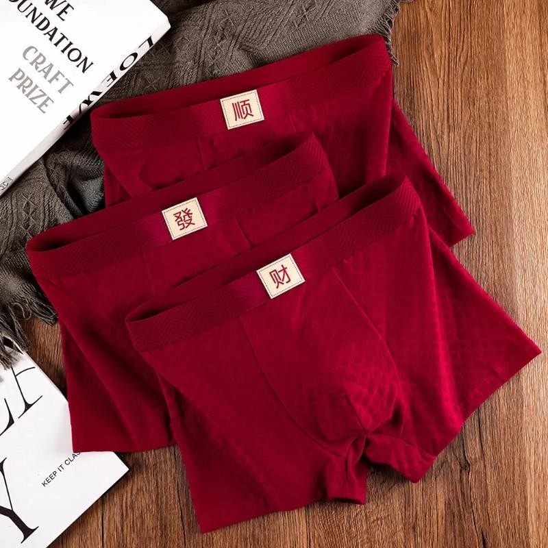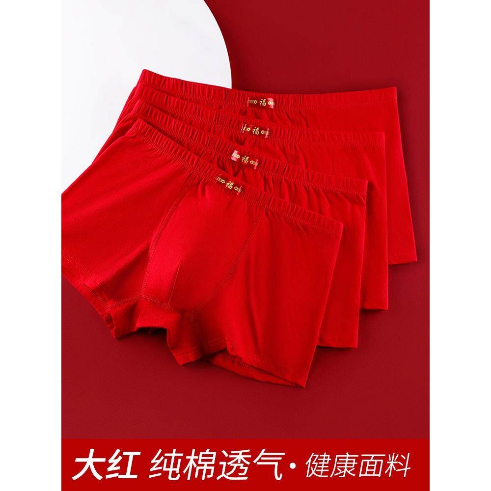 纯棉男士内裤本命年四角短裤衩透气男底裤头结婚送礼物大红色平角