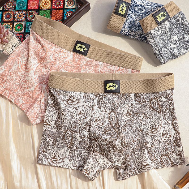 抖量严选小店美式复古风涂鸦男士内裤宽松透气阿罗裤纯棉平角a47